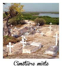 Celle-ci est peuplée à 90% de catholiques, soit l’inverse du reste du Sénégal. Elle possède un cimetière mixte musulman et chrétien. Depuis celui-ci vous aurez un point de vue imprenable sur les symboles des trois religions du Sénégal : la religion Musulmane représentée par la mosquée, la religion Catholique représenté par l'église et la religion Animiste représenté par le baobab sacré.